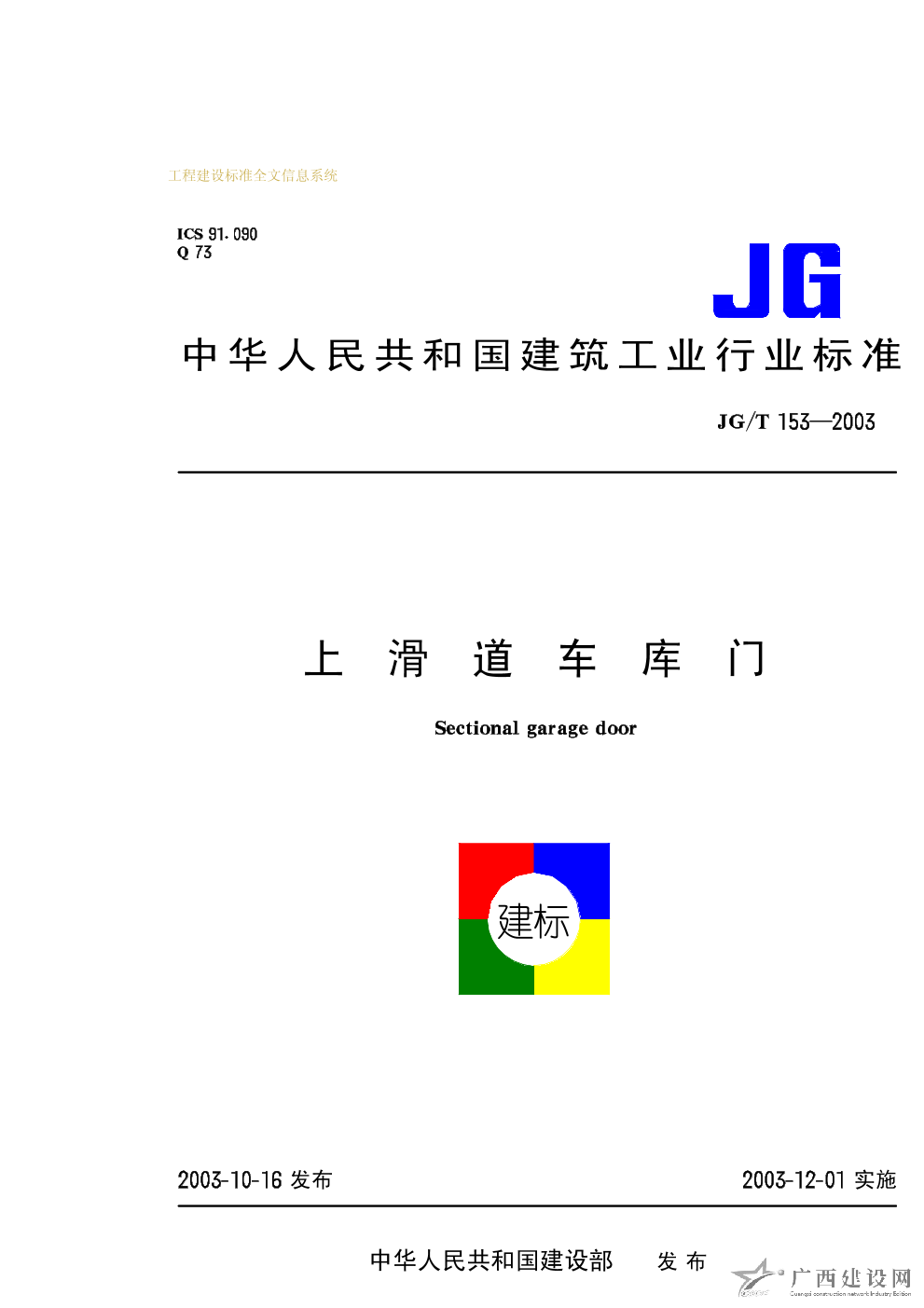 上滑道車(chē)庫(kù)門(mén) JG/T153-2003