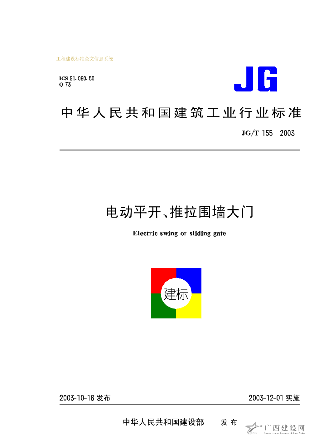電動(dòng)平開(kāi)、推拉圍墻大門(mén) JG/T155-2003