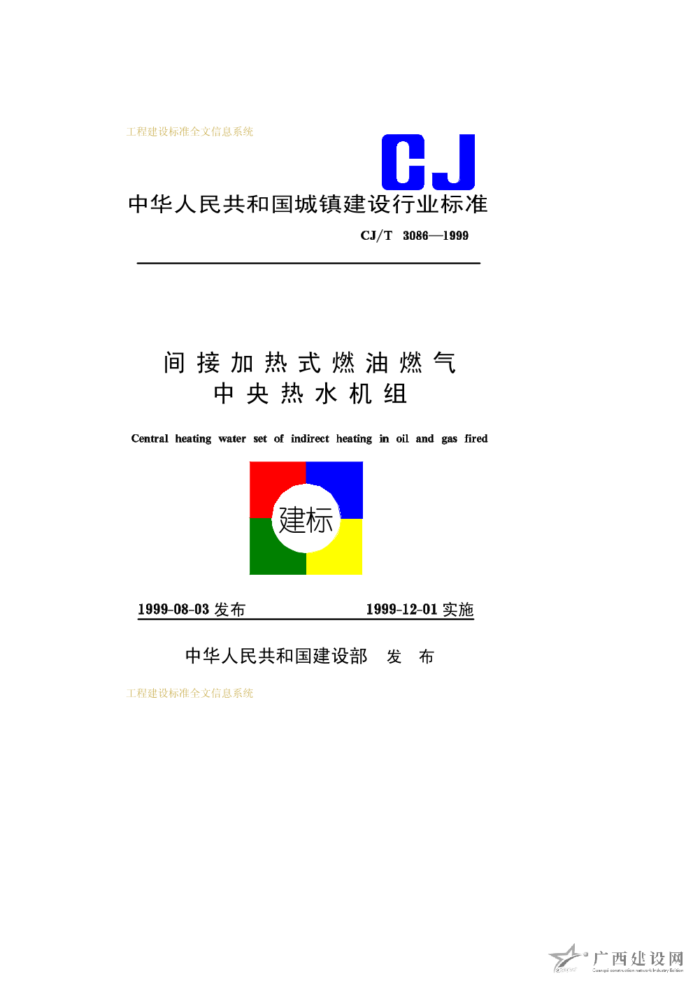 間接加熱式燃油燃氣中央熱水機組 CJ/T3086—1999