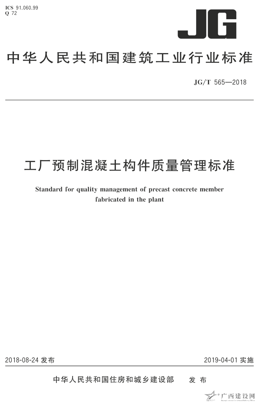 JGT565-2018工廠預制混凝土構件質量管理標準