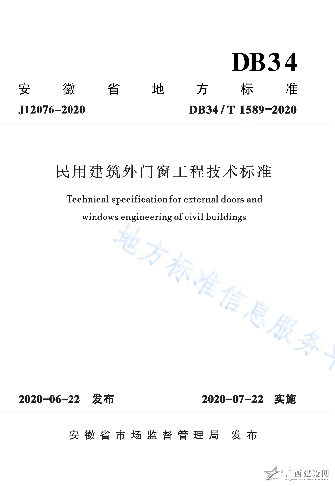 DB34 T1589-2020民用建筑外門(mén)窗工程技術(shù)標(biāo)準(zhǔn)