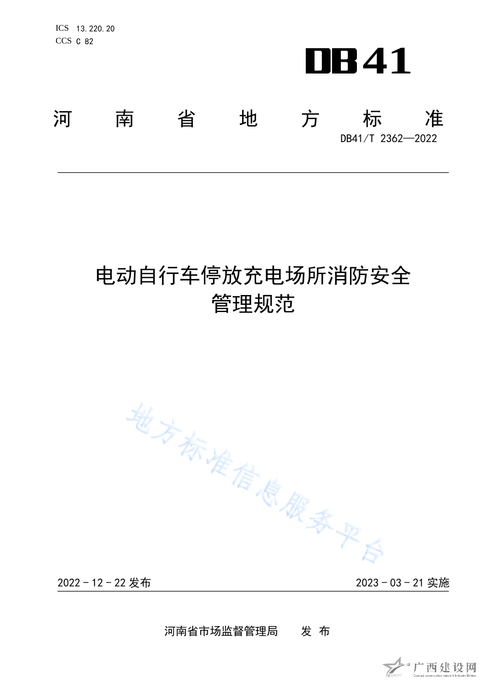 DB62 T4278-2-2020消防安全規范 第2部分:電動自行車停放充電場所