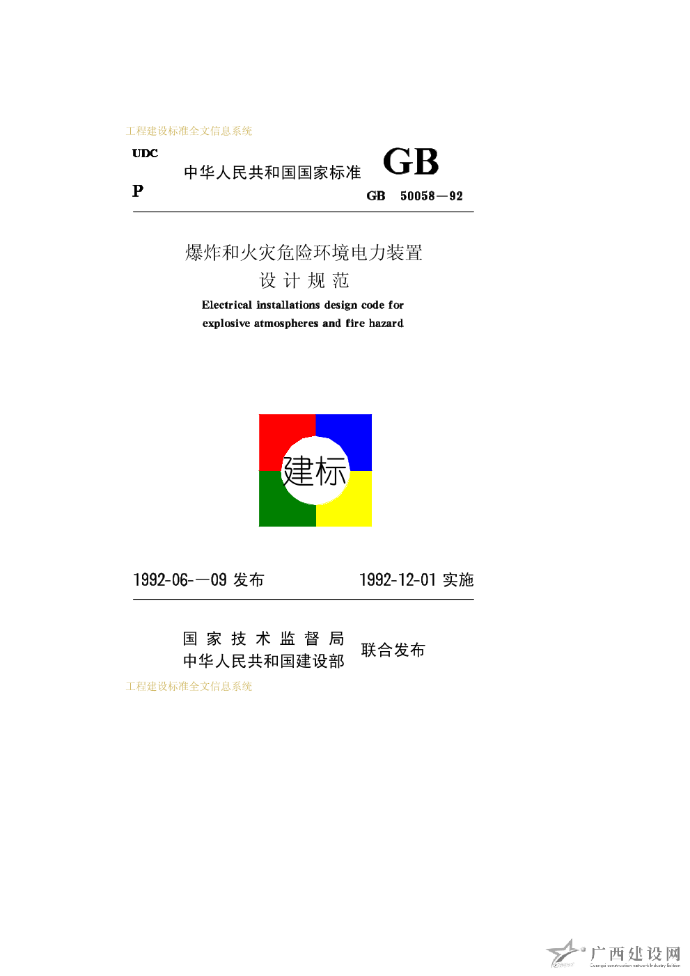 爆炸和火災(zāi)危險(xiǎn)環(huán)境電力裝置設(shè)計(jì)規(guī)范 GB50058-92