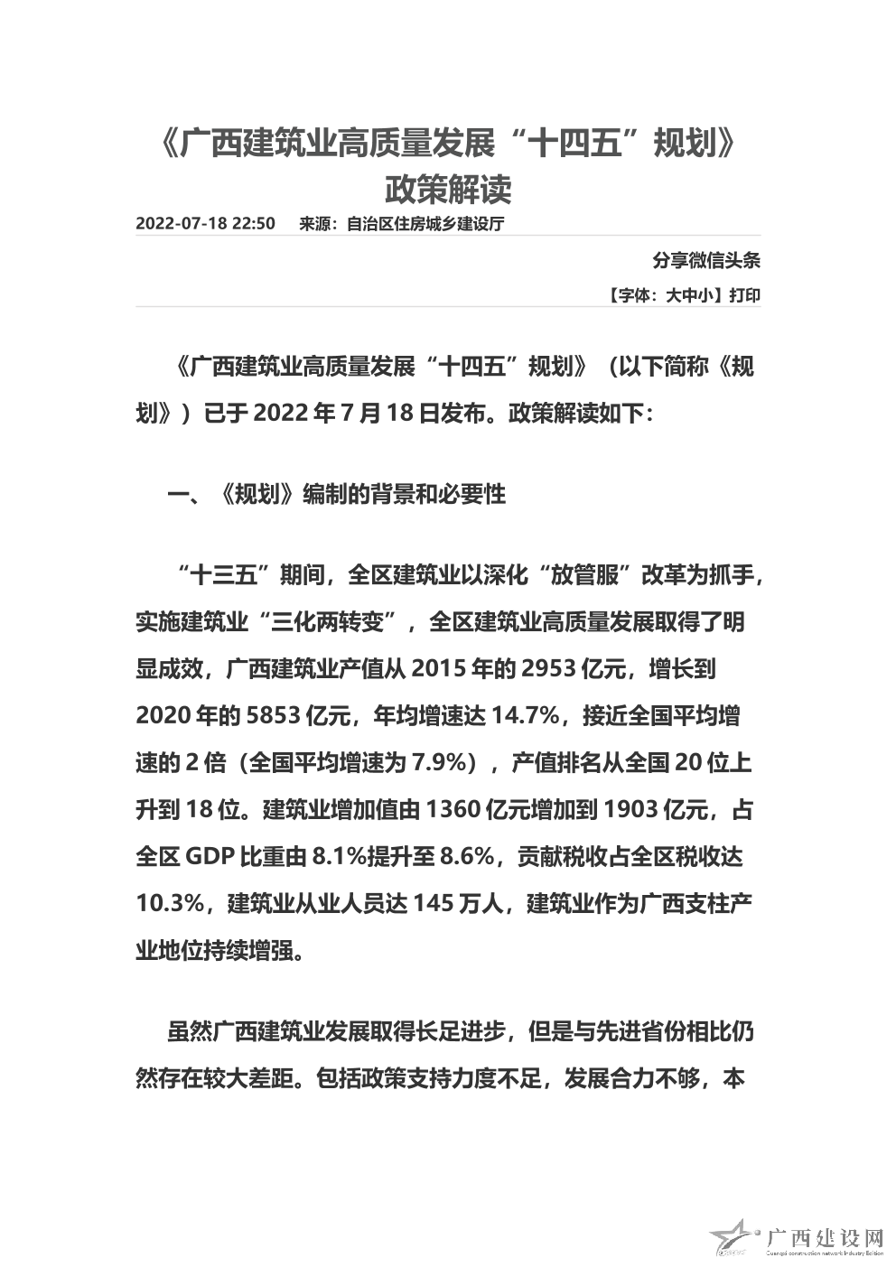 《廣西建筑業(yè)高質(zhì)量發(fā)展“十四五”規(guī)劃》政策解讀