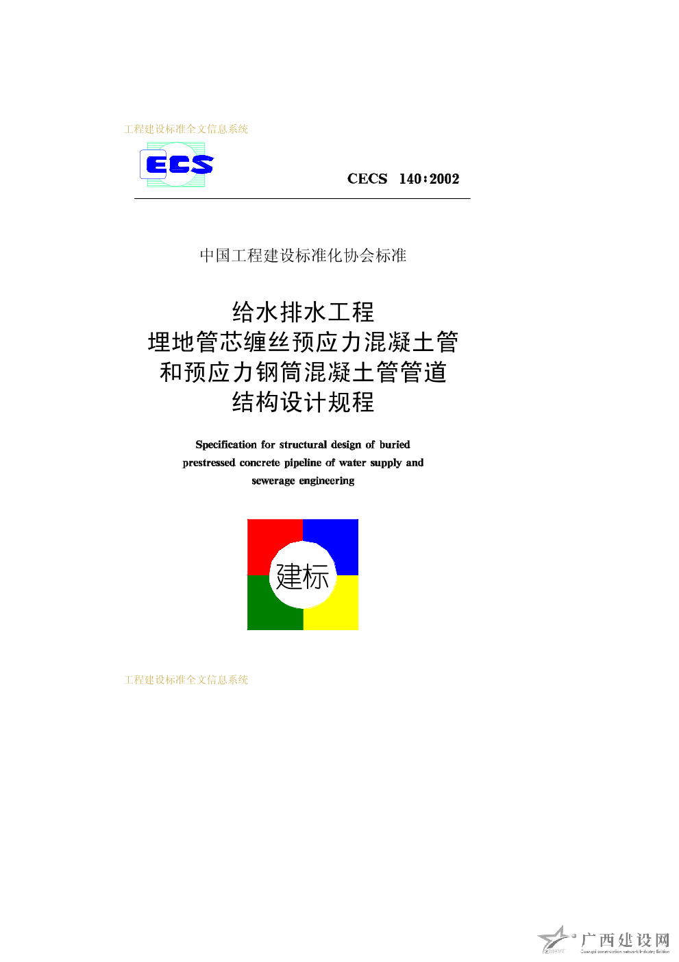 給水排水工程埋地管芯纏絲預(yù)應(yīng)力混凝土管和預(yù)應(yīng)力鋼筒混凝土管管道結(jié)構(gòu)設(shè)計規(guī)程 CECS140