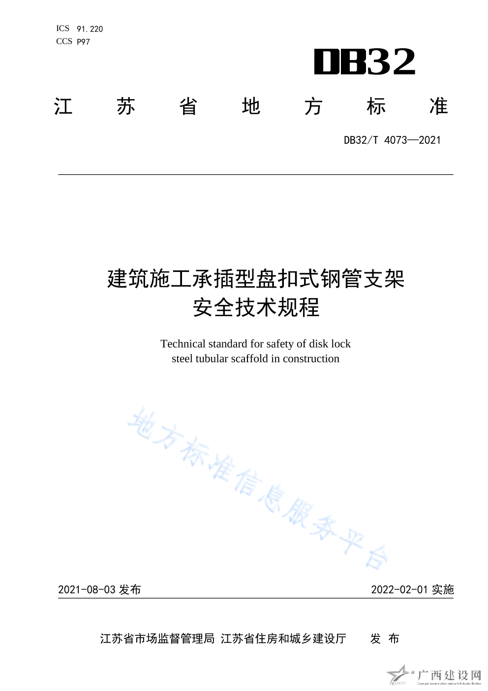DB32 T4073-2021建筑施工承插型盤扣式鋼管支架安全技術(shù)規(guī)程