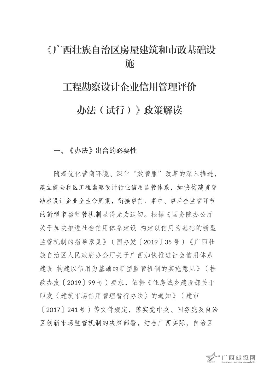 《廣西優秀工程勘察設計成果等次評定辦法(試行)》政策解讀材料