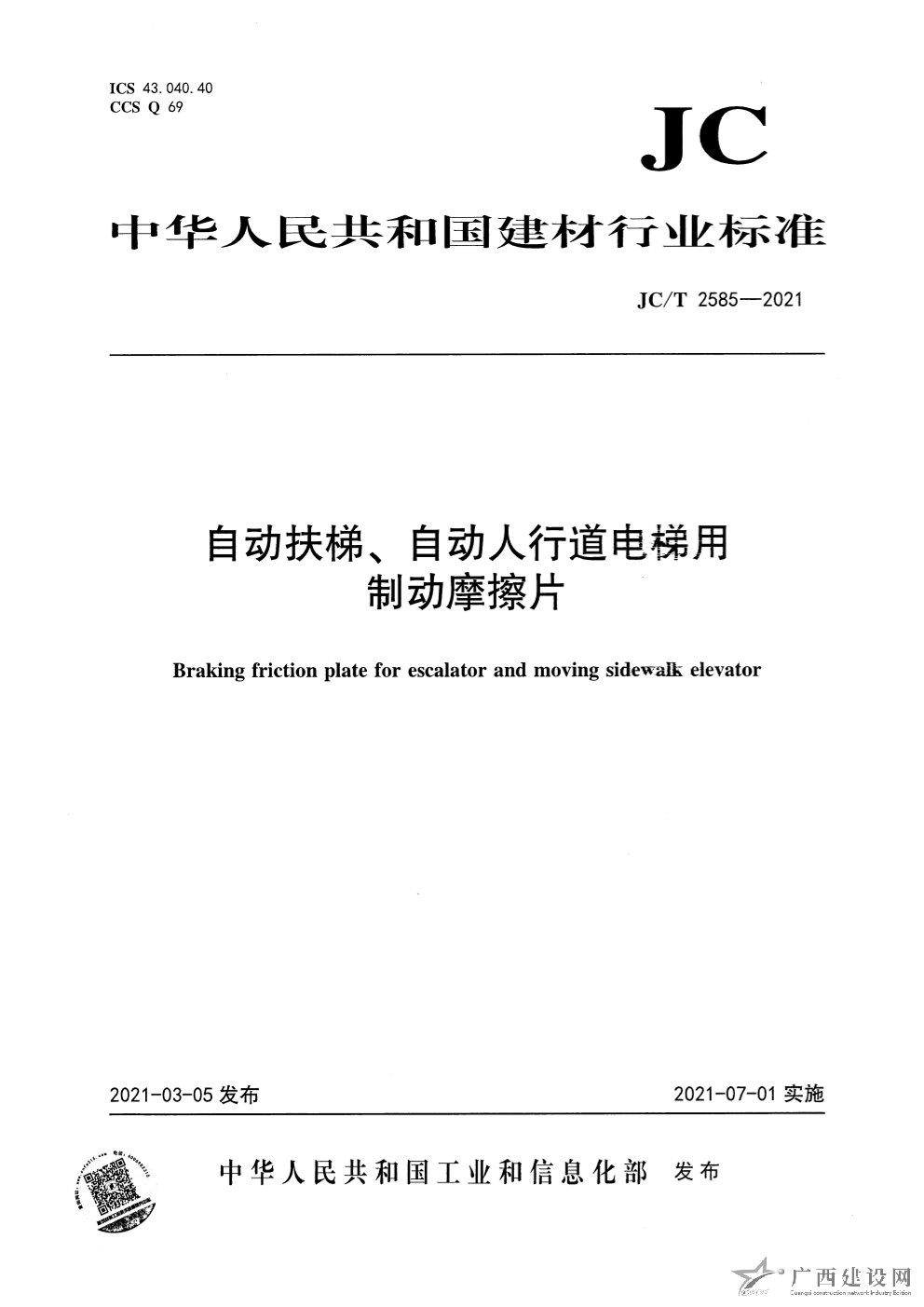 JC T 2585-2021 自動扶梯、自動人行道電梯用制動摩擦片
