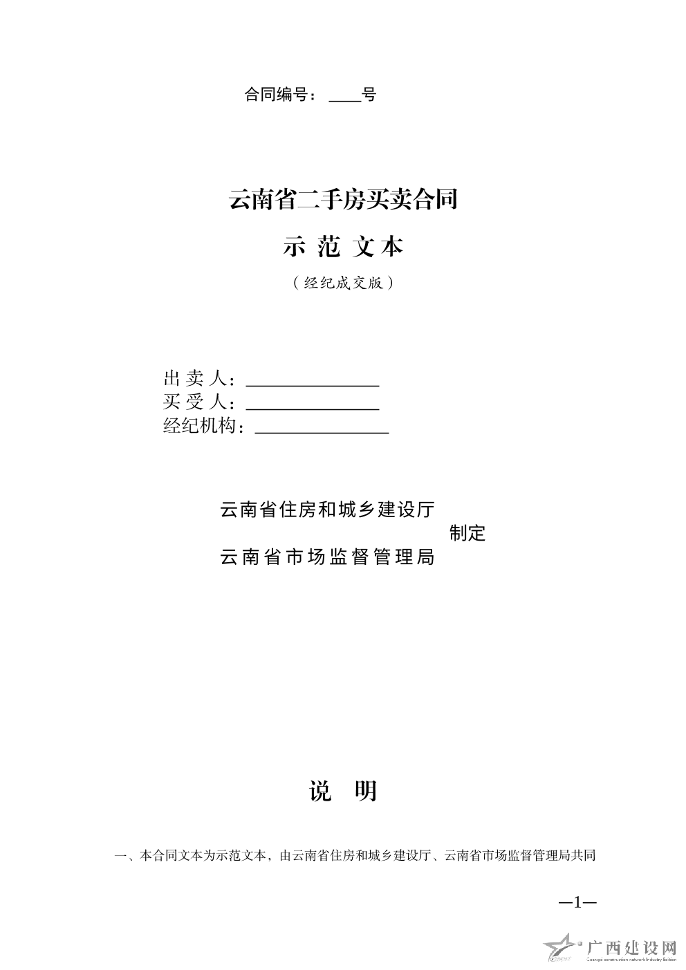 云南省二手房買賣合同示范文本(自行成交版)