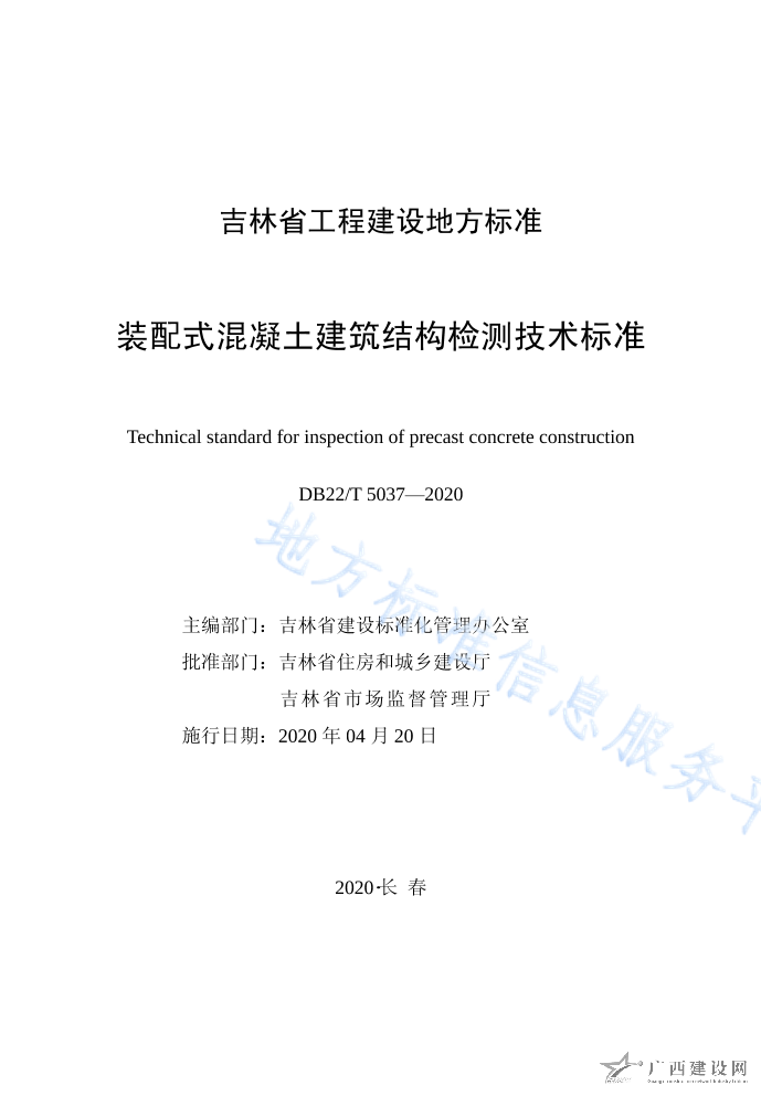 DB22 5037-2020裝配式混凝土建筑結構檢測技術標準