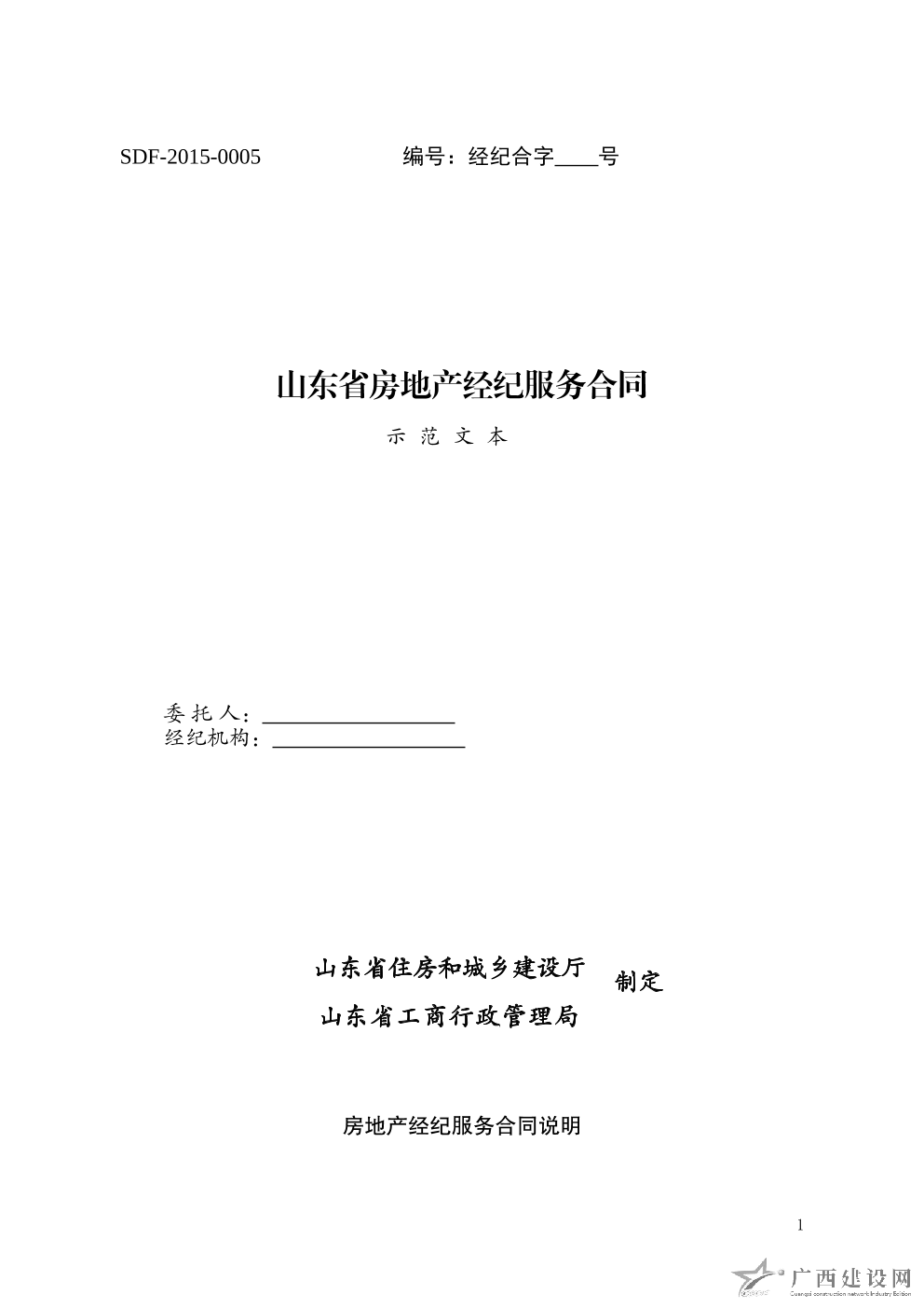 2015 SDF-2015-0003《山東省二手房買賣合同示范文本(經紀成交版)》