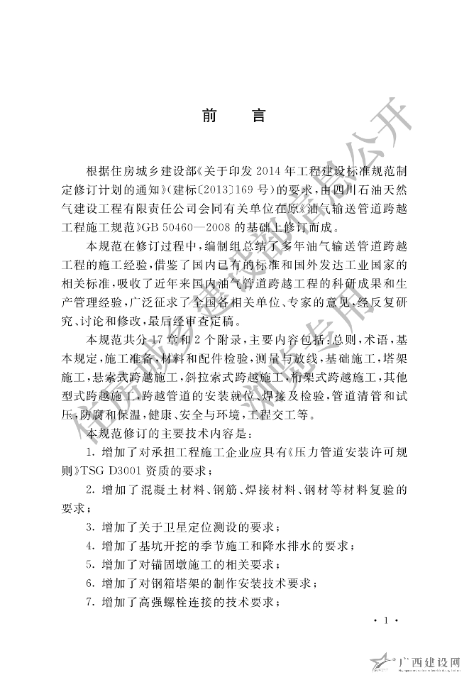 GB 50460-2015油氣輸送管道跨越工程施工規(guī)范