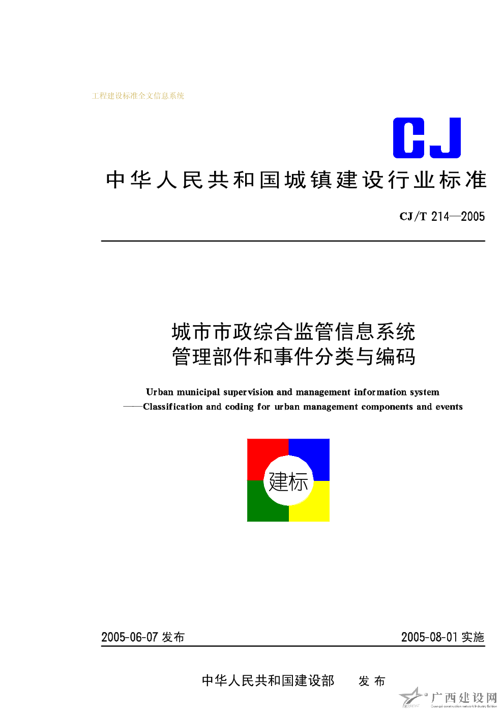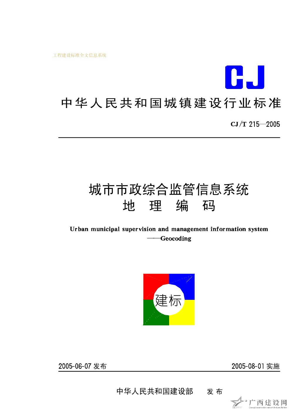 城市市政綜合監管信息系統地理編碼 CJ/T215-2005