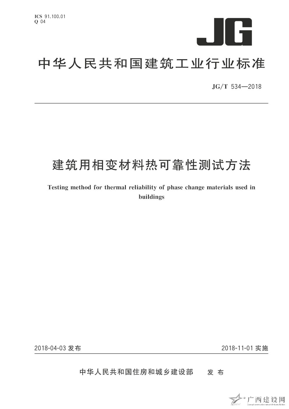 JG-T534-2018:建筑用相變材料熱可靠性測(cè)試方法