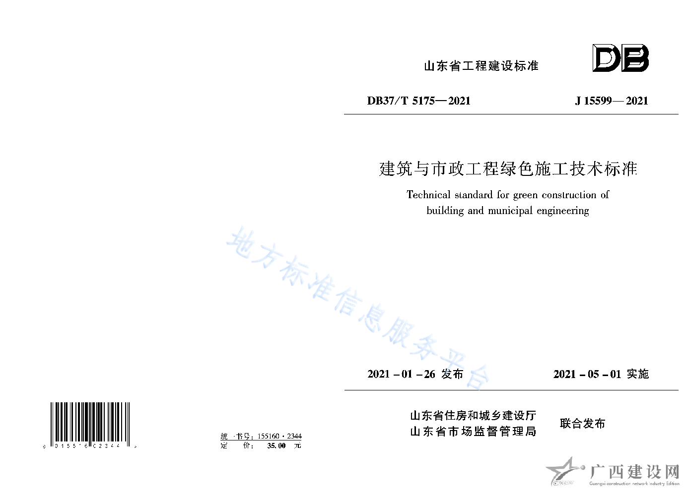 DB37 T5087-2021建筑與市政工程綠色施工評價標準