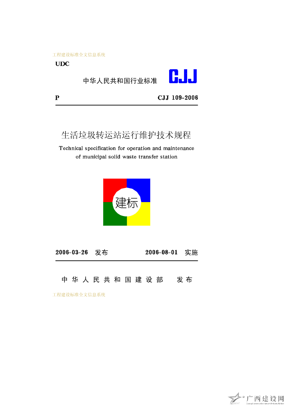 生活垃圾轉(zhuǎn)運(yùn)站運(yùn)行維護(hù)技術(shù)規(guī)程 CJJ109-2006