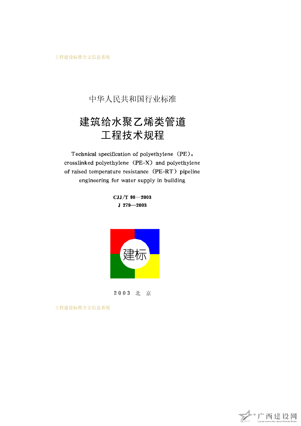 建筑給水聚乙烯類管道工程技術(shù)規(guī)程 CJJ/T98-2003