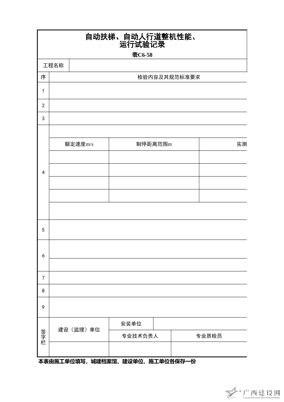自動扶梯自動人行道安裝與土建交接預(yù)檢記錄表C5-28